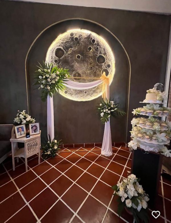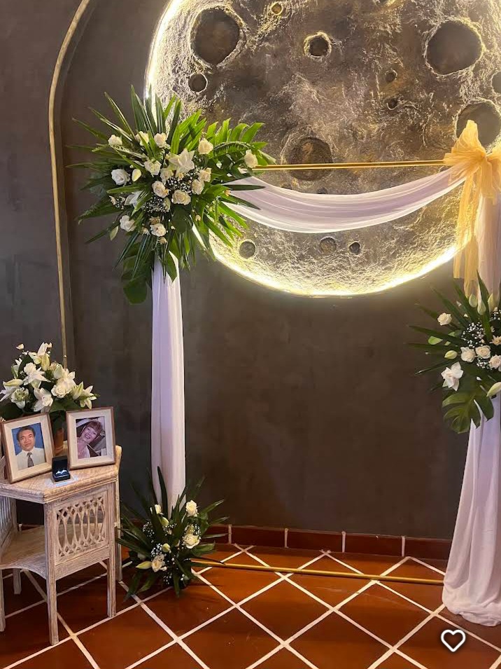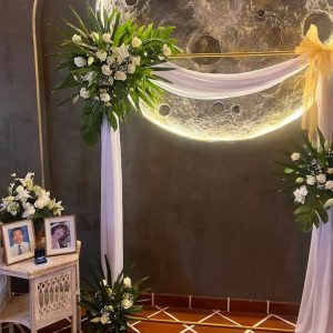5 Fresh Flowers and leaves Structures in the picture including Golden Arch and Veils White Roses and Lotus for Weddings Engagements photography. Flower Colors can changed. kindly pre order. Whatssapp inquiry to ask details +94777035689