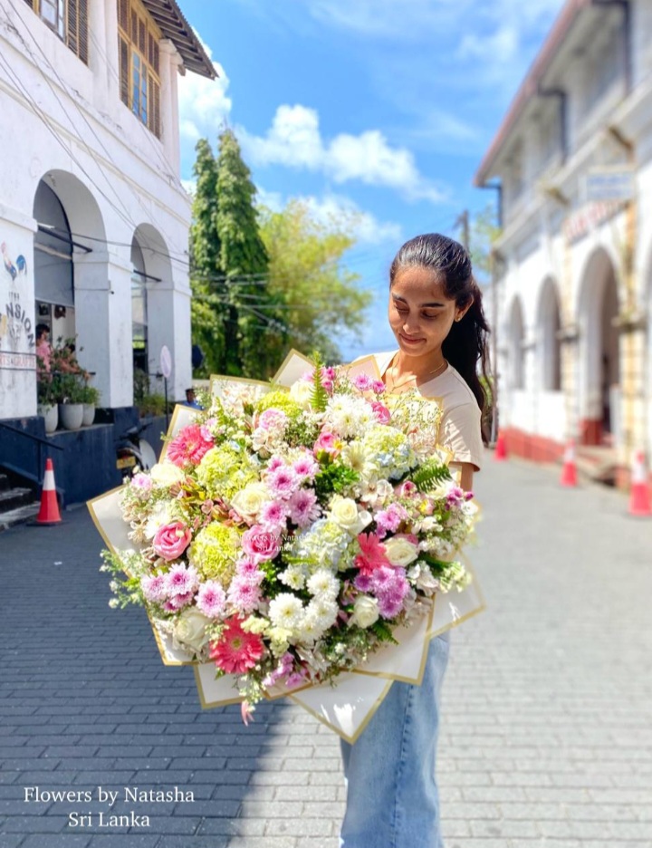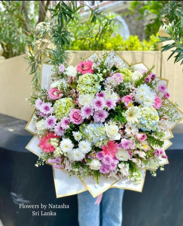 Large Pink White Roses Hydrangea Bouquet FREE delivery in Galle Unawatuna Beruwala Kalutara Bentota Induruwa Kosgoda Ahungalla City and beach limits USD 120