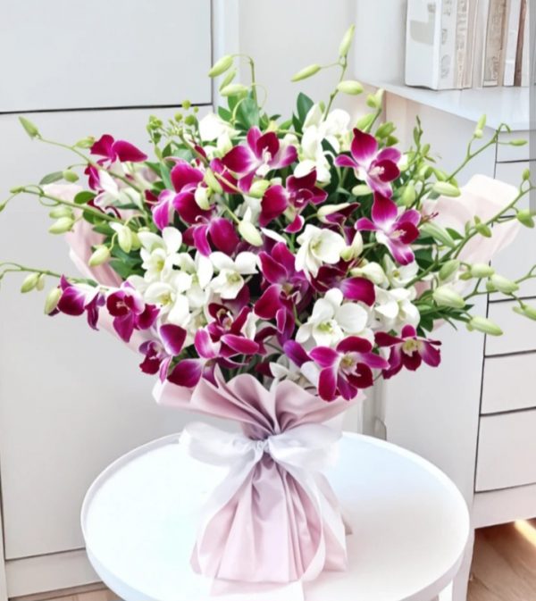 Purple and White Orchids 30 blooms and Orchid buds bouquet FREE delivery in Galle Unawatuna Beruwala Kalutara Bentota Induruwa Kosgoda Ahungalla City and beach limits USD 23