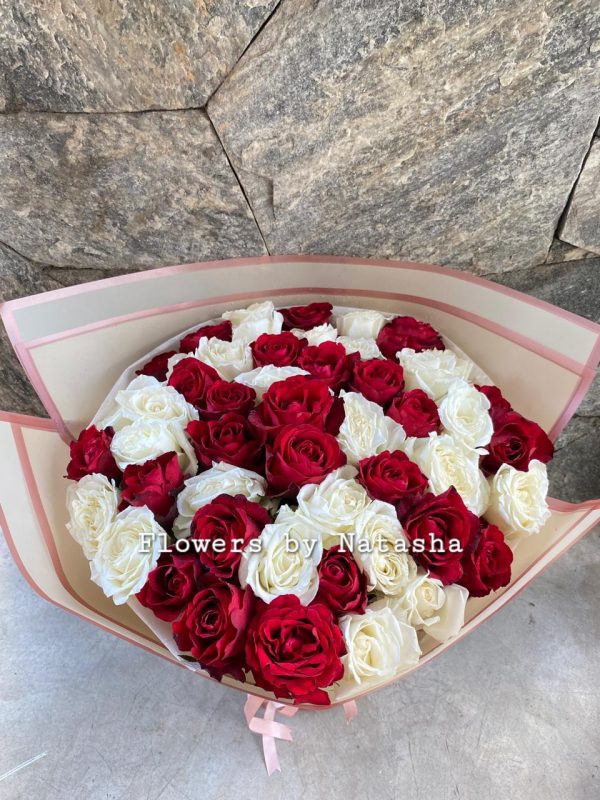 Red and White 50 Roses LARGE Bouquet FREE delivery in Galle Unawatuna Beruwala Kalutara Bentota Induruwa Kosgoda Ahungalla City and beach limits USD 125