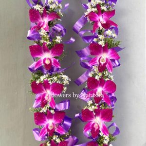 VIP Welcome long Orchids Garland, made of the Large Purple Orchids and Purple and White Mountain Flowers