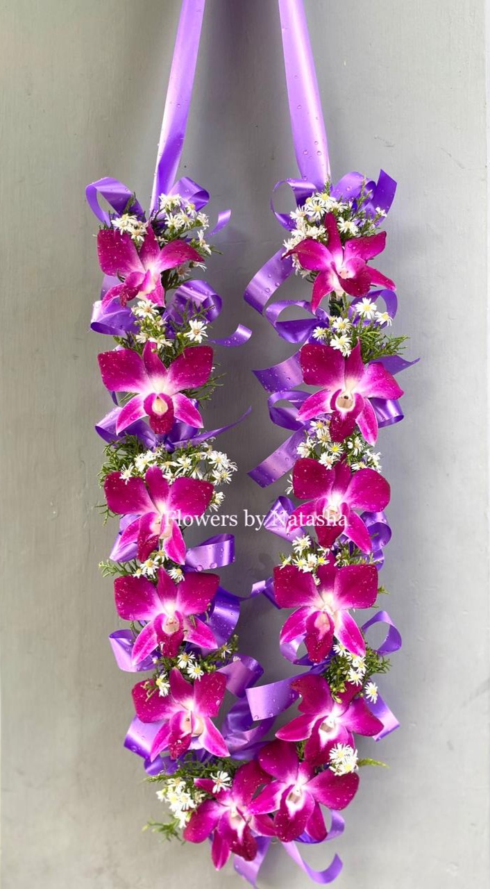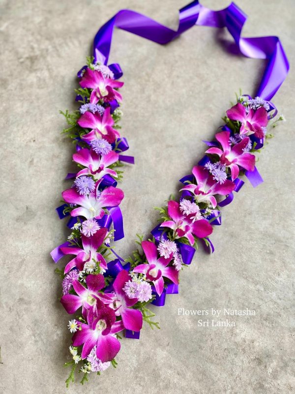 Large Purple Orchids and Purple and white Mountain Flowers VIP Welcome Garland FREE delivery in Galle Unawatuna Beruwala Kalutara Bentota Induruwa Kosgoda Ahungalla City and beach limits USD 20