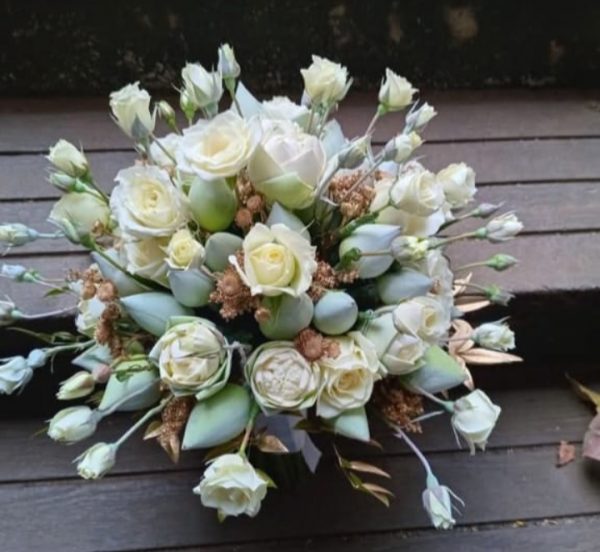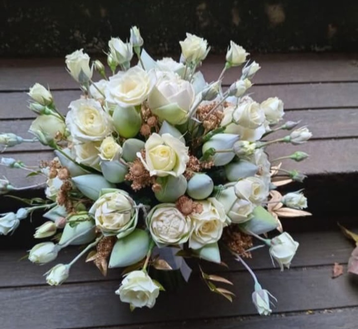 White large and Bush Roses Lotus Limonium Babys Breath Engagement Wedding or Photography Bouquet Kindly order 1 day before FREE delivery in Galle Unawatuna Beruwala Kalutara Bentota Induruwa Kosgoda Ahungalla City and beach limits USD 100